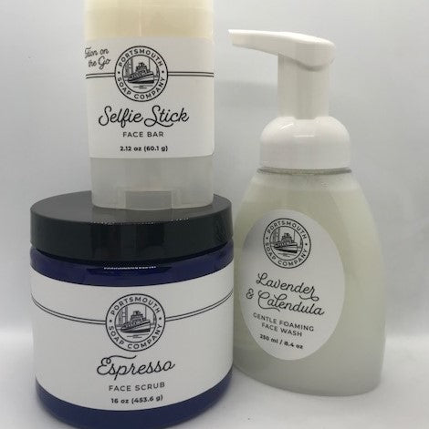 Our face cleansing, exfoliating and moisturizing collection includes our Lavender & Calendula Gentle Foaming Face Wash; our Selfie Stick Face Bar, great for moisturizing on-the-go; and our Espresso Face Scrub and our Wrinkle in Thyme Face & Neck Serum for daily rejuvination for your skin.